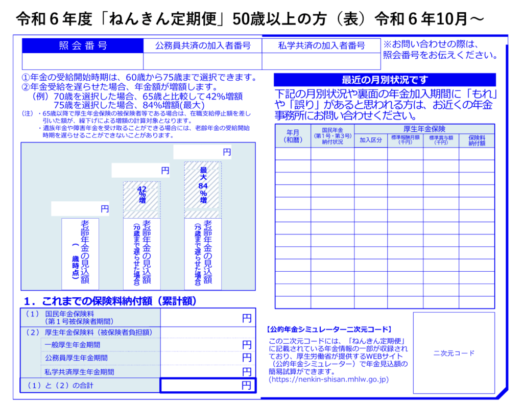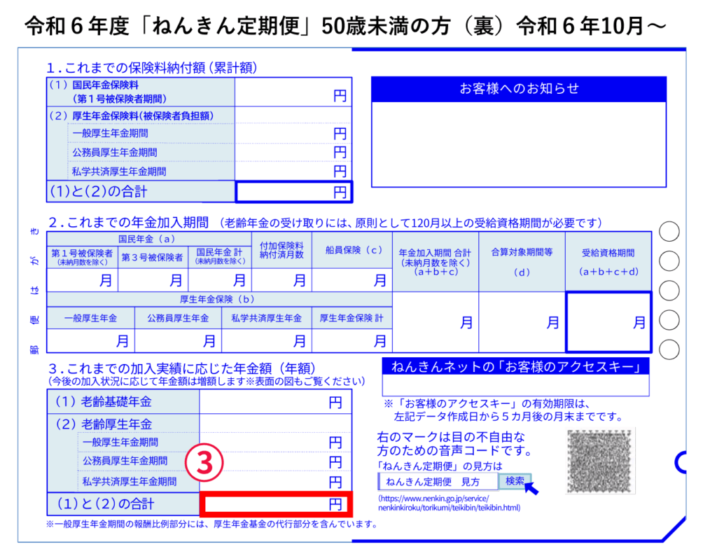 出典:日本年金機構「「ねんきん定期便」の様式(サンプル)と見方ガイド(令和6年度送付分)」