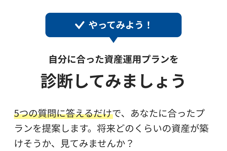 最短1分で自分に合った資産運用プランを確認できます。